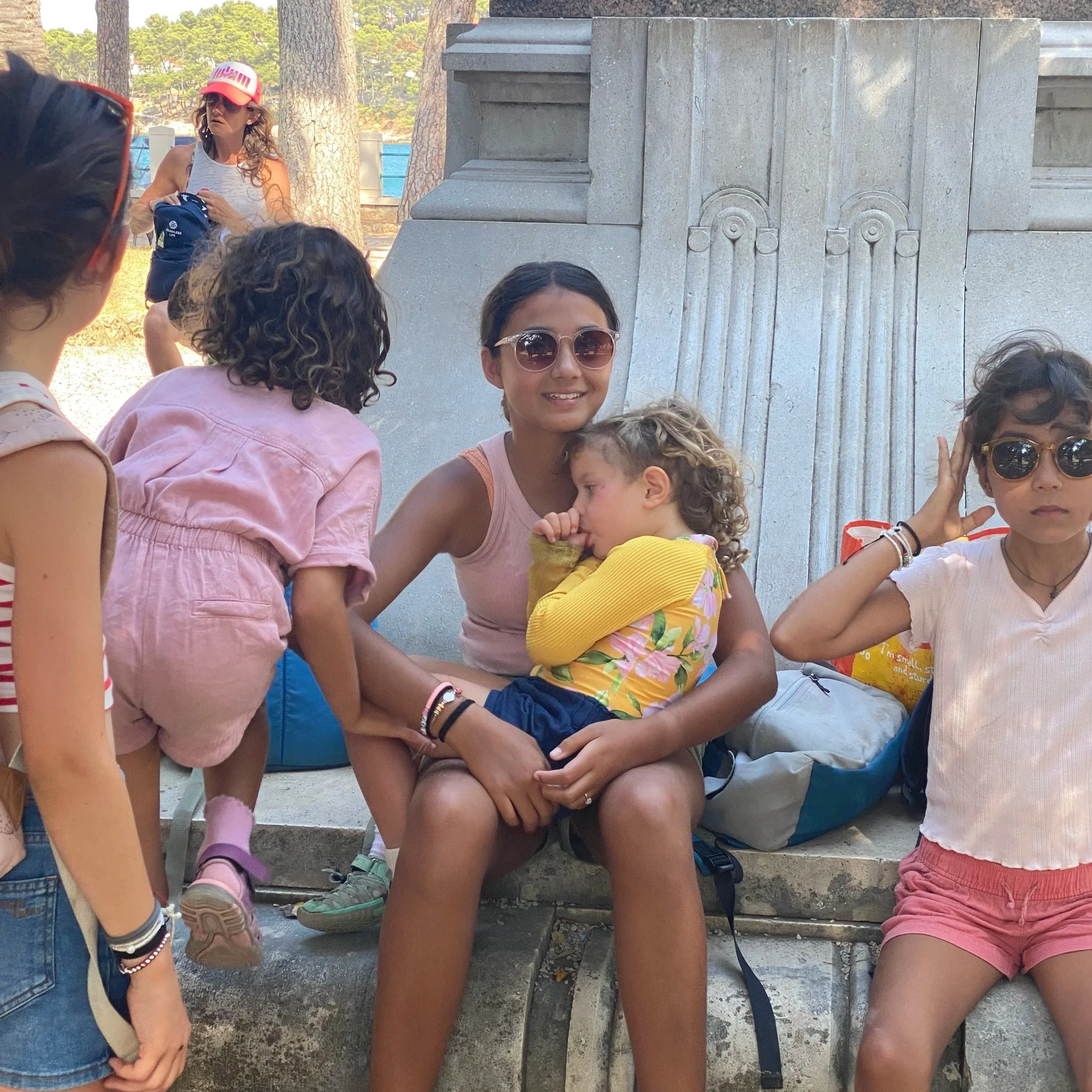 A private garden with 3 raised beds. There is a bathroom here, a covered terrace, and a climate-controlled interior in case a child is unwell or needs to rest. This is a pleasant one-hour walk with older children or a 5-minute drive.